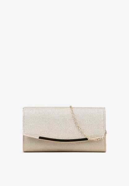 Złota Brokatowa Torebka Kopertówka z Ozdobnym Łańcuszkiem i Uchwytem Droma