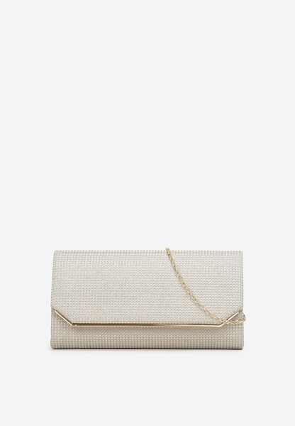 Złota Torebka Kopertówka z Ozdobnymi Cyrkoniami i Metalowym Łańcuszkiem Tiamate