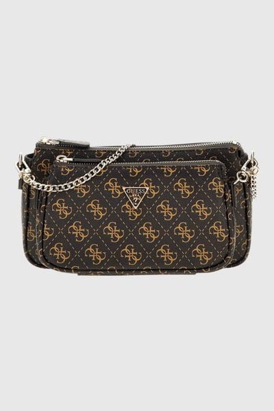 Brązowa torebka damska Noelle, marki Guess.Wykonana ze skóry ekologicznej, posiada regulowany pasek. Jedna duża komora z trzema wsuwanymi kieszeniami na karty, oraz jedną zasuwaną, druga kieszeń zewnętrzne zasuwana na zamek. W zestawie znajduje się mała saszetka damska, która jest odpinana i może służyć jak oddzielna mała torebka. Wymiary saszetki: 11 x 19,5 x 3