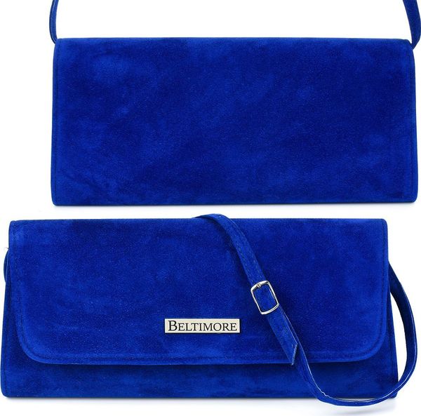 Beltimore Niebieska oryginalna damska torebka kopertówka na pasku usztywniana W63