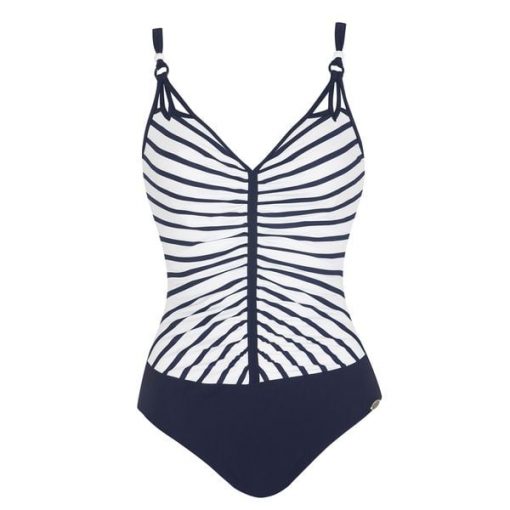 Granatowo-Beżowy Strój Kąpielowy Jednoczęściowy w Zwierzęce Printy Linoselle