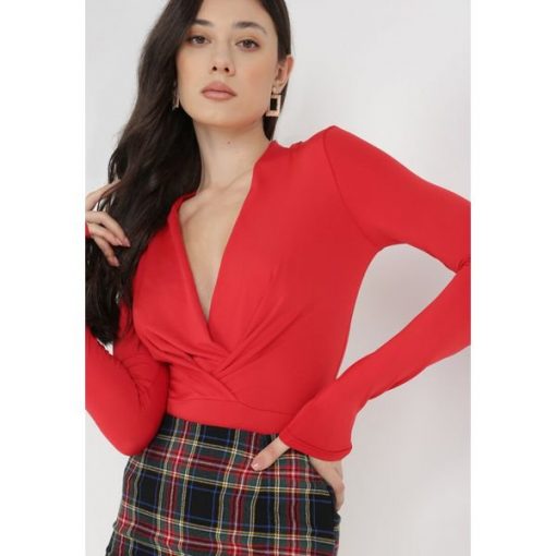 Body Candletree z bardzo głębokim, kopertowym dekoltem ozdobionym z przodu marszczeniem. O dopasowanym kroju, z długimi, prostymi rękawami. Zapinane na haftki od dołu. To body fantastycznie podkreśli Twoją sylwetkę i sprawi, że będziesz prezentować się bardzo kobieco!