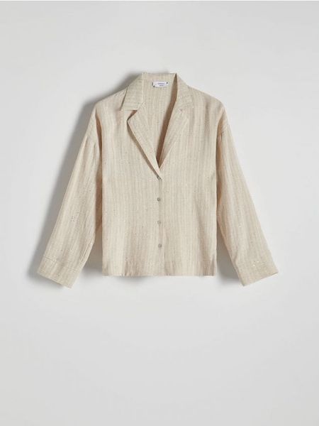 Koszula oversize z lnem oraz wiskozą – beżowy