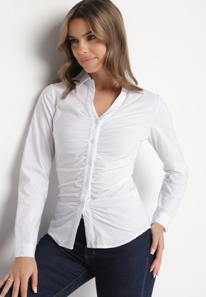 Biała Koszula z Wiskozy Ozdobiona Marszczeniem Nonathra