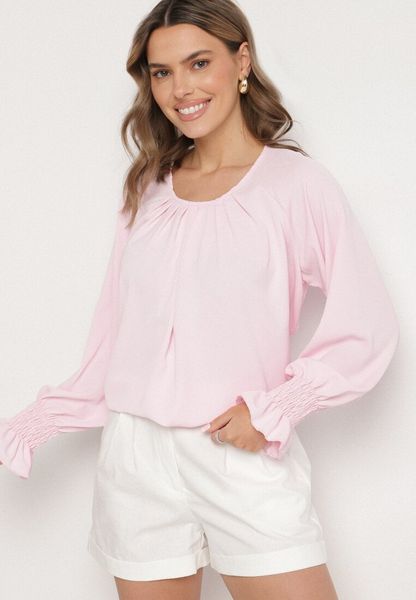 Różowa Bluzka z Ozdobnymi Falbankami Emitta
