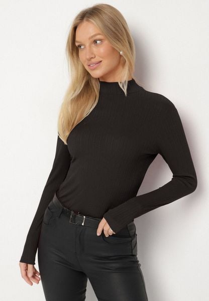 Czarna Bluzka z Golfem i Długim Rękawem w Klasycznym Stylu Abontia