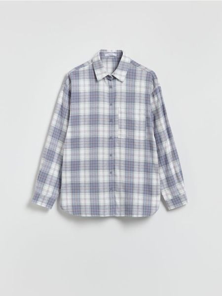 Koszula o swobodnym kroju, wykonana z bawełnianej tkaniny.
