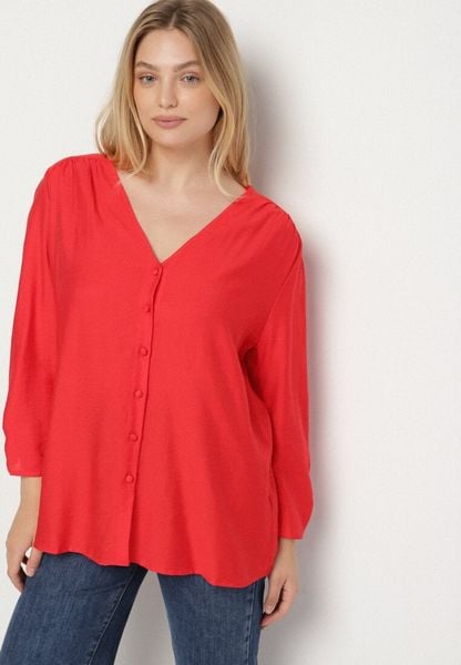 Czerwona Koszula z Wiskozy Ozdobiona Marszczonymi Rękawami i Guzikami Lanorea