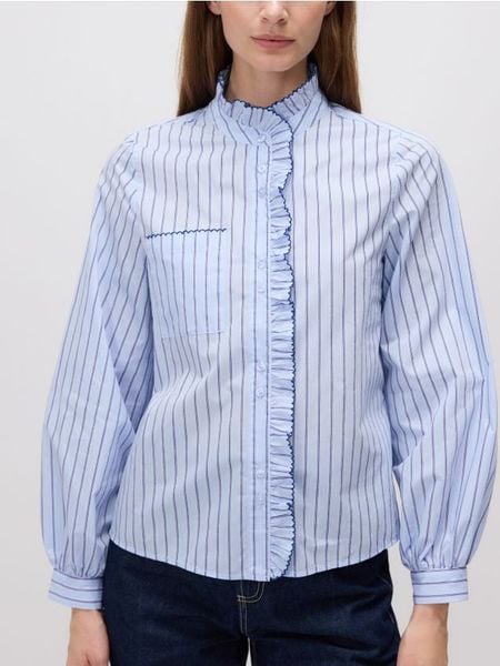 Koszula o prostym kroju, wykonana z tkaniny z bawełną.