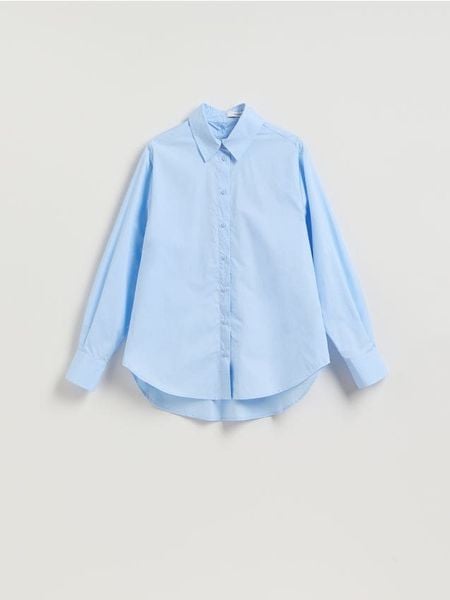 Koszula o swobodnym kroju, wykonana z bawełnianej tkaniny.