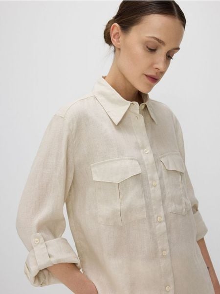 Koszula o klasycznym fasonie, uszyta z lnu.