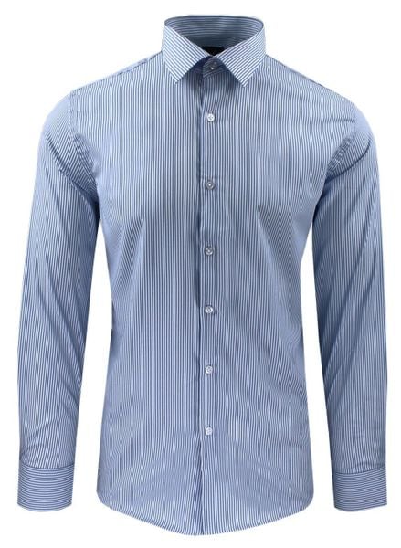 Taliowana Koszula Wizytowa, Męska – Victorio – Niebieska, Drobny Prążek