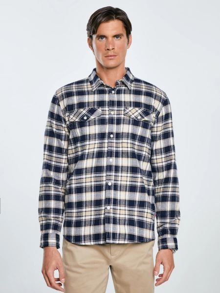 Koszula męska flanelowa w kratę beżowo-granatowa Kolisero 801