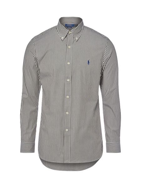 Koszula Polo Ralph Lauren w paski i z kołnierzykiem zapinanym na guziki jest stylowym towarzyszem, a elastyczna bawełna zapewnia wysoki komfort noszenia.