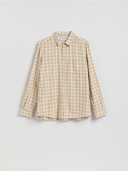Koszula regular z lnem – beżowy