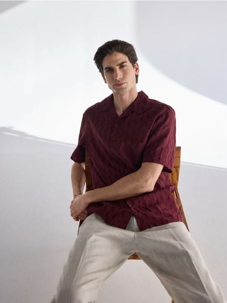 Koszula regular z lyocellem – bordowy