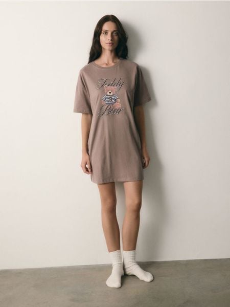 Koszula nocna o prostym kroju, wykonana z bawełnianej dzianiny.