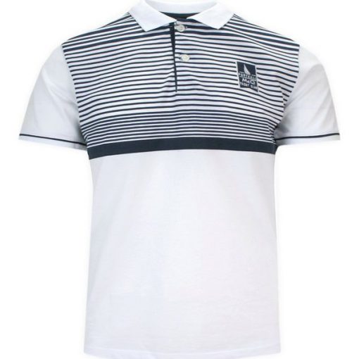 Koszulka POLO, Biało-Granatowa w Paski, Krótki Rękaw, Męska, z Nadrukiem