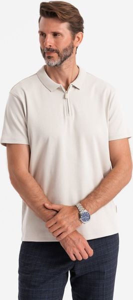 Męska koszulka polo z zapinanym na zamek kołnierzykiem popielata V2 OM-POSS-0132 S