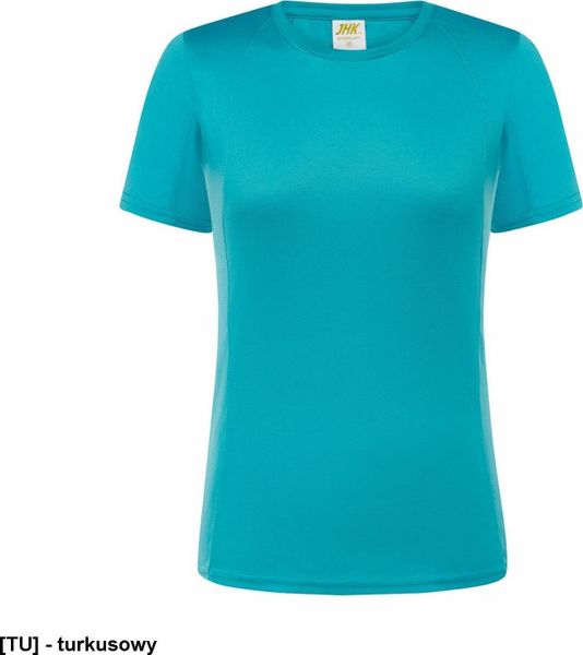 JHK T-shirt JHK SPORTLADY damski sportowy – dopasowany do sylwetki, dekoracyjne przeszycia przd, tył, rękawy, 100% poliester, 130g, – turkusowy L