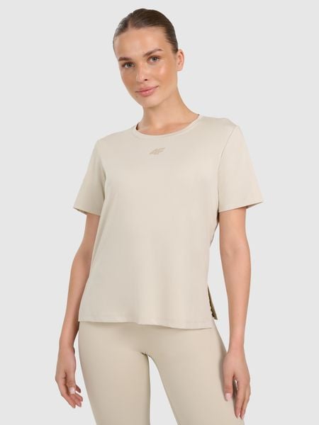 4F Koszulka treningowa regular szybkoschnąca damska – beżowa M
