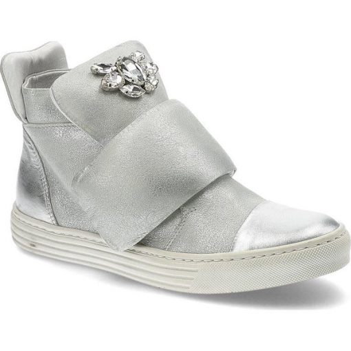 Srebrne Botki Carinii Skórzane Buty Damskie