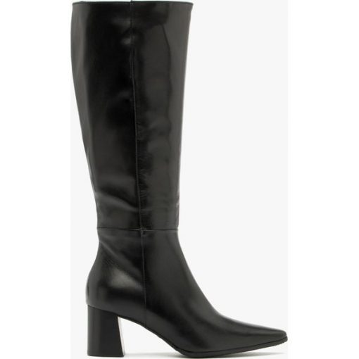 Czarne kozaki na obcasie z linii RYŁKO. Model wykonany ze skóry licowej. Podszewka wykonana ze skóry i tkaniny, a wyściółka skórzana. Model nieocieplony. Obcas lakierowany o wysokości 6,5 cm. Nosek kwadratowy. Zamek na całej długości cholewki. Wersja z szeroką cholewką. Dystrybutor: Brawo Sp. z o.o. ul. Dworcowa 19, 34-130 Kalwaria Zebrzydowska; sklep@rylko.com Kraj pochodzenia: POLSKA