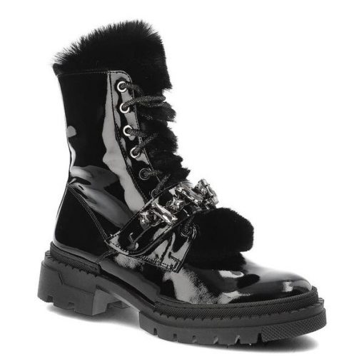 Czarne Botki Armodo Lakierowane Obuwie Damskie