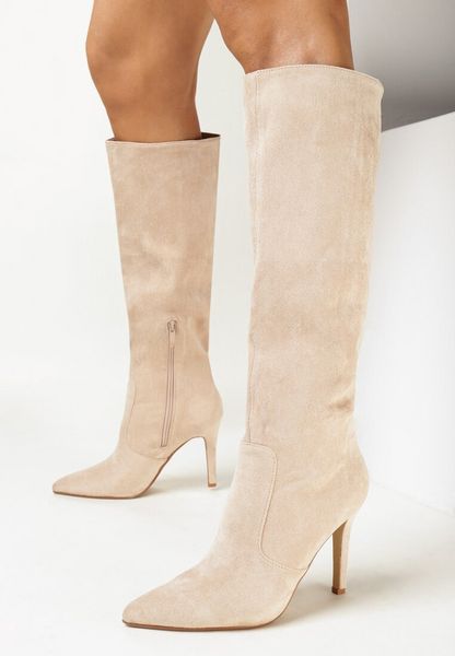 Beżowe Kozaki na Szpilce ze Szpiczastym Noskiem Velvita