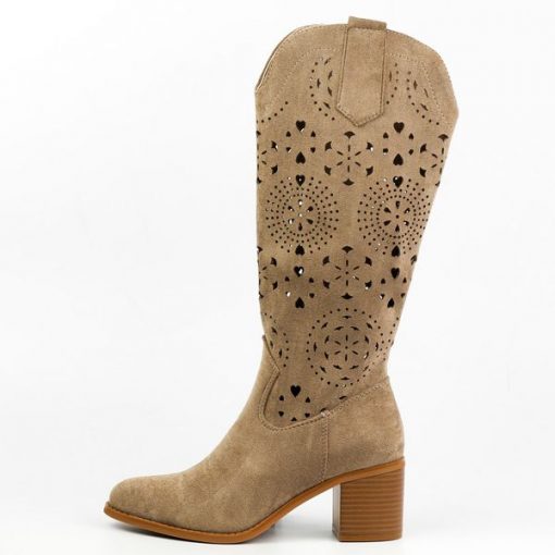 Te beżowe ażurowe kozaki damskie na słupkusą doskonałym wyborem na wiosnę, jesień oraz mniej upalne dni letnie, a także na różnego rodzaju okazje. Ich cholewka wykonana z materiału zamszopodobnego nadaje im elegancki wygląd, a wygodny suwak ułatwia zakładanie i zdejmowanie butów. Migdałowy nosek dodaje delikatności i subtelności całemu designowi.Ażurowana cholewka zapewnia odpowiednią wentylację, co sprawia, […]