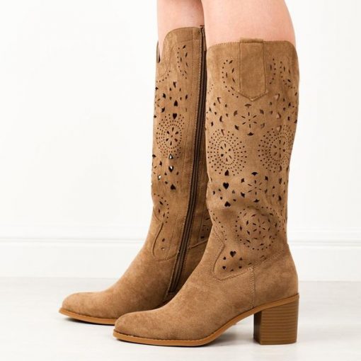 Ażurowe be zamszowe kozaki damskie na obcasie M.Daszyński 2337-7