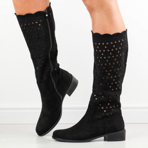 Czarne wiosenne zamszowe kozaki damskie M.Daszyński Sa198-33