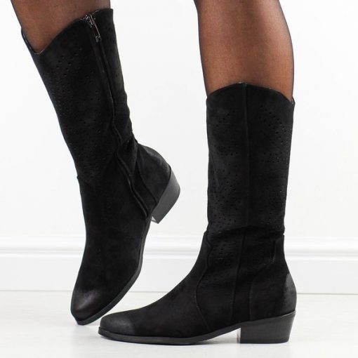 Czarne zamszowe kowbojki, kozaki damskie Potocki 12271