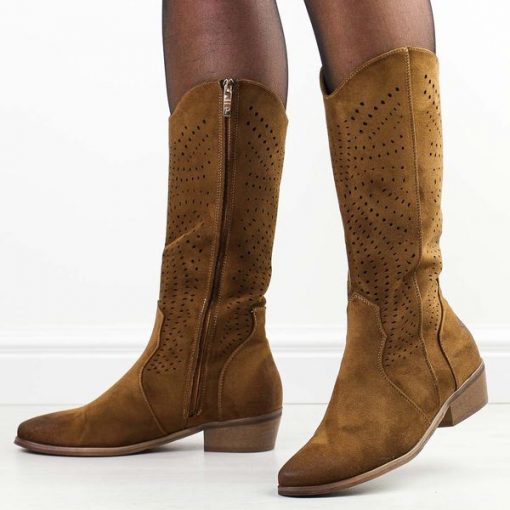 Camelowe zamszowe kowbojki, kozaki damskie Potocki 12271