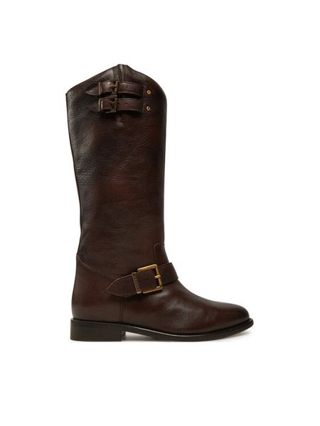Brązowe Kozaki Oficerki Vices na Słupku z Ozdobnymi Panelami przy Cholewce Aforrive