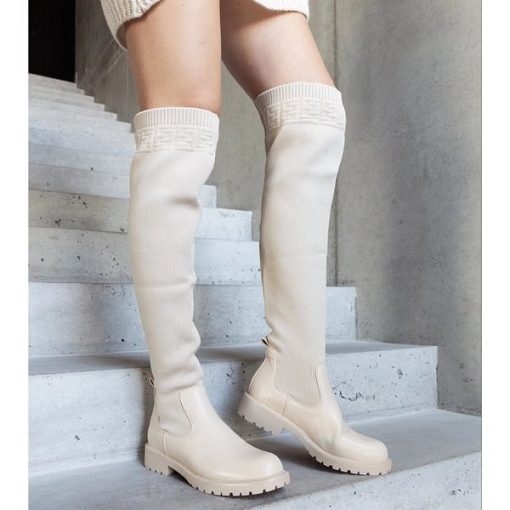 Beżowe długie kozaki z elastyczną cholewką Juanra beżowy