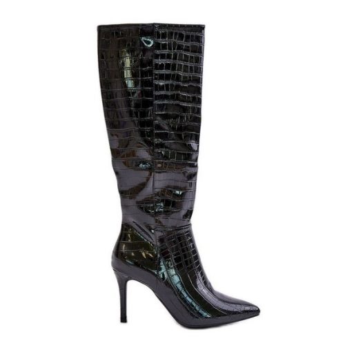 Kozaki Na Szpilce Z Tłoczeniem Czarne Reanwenna