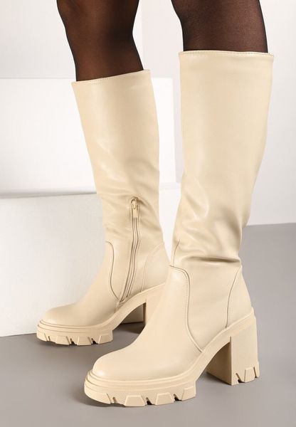 Beżowe Casualowe Kozaki na Słupku z Dopasowaną Cholewką Avanielle