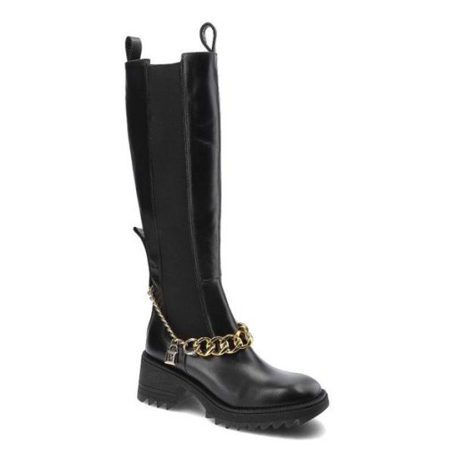 Czarne Kozaki Damskie Carinii Modne Buty Skórzane