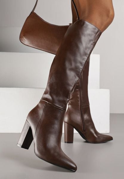 Brązowe Kozaki Vices na Słupkowym Obcasie z Noskiem w Szpic Lanoretta