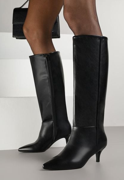 Czarne Eleganckie Kozaki na Kaczuszce z Noskiem w Szpic Alivitte