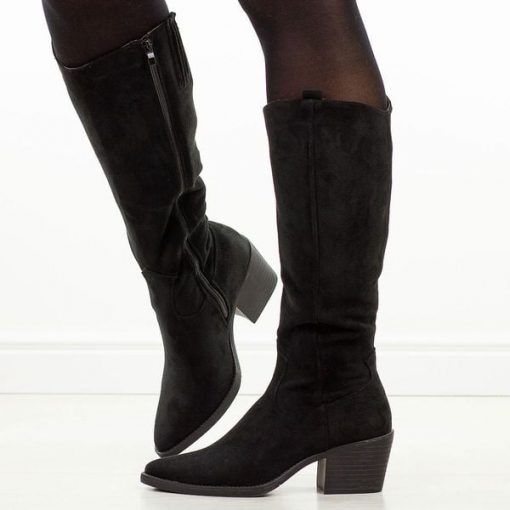 Czarne sue kozaki damskie M.Daszyński Sa261-6