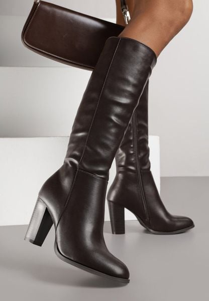 Ciemnobrązowe Eleganckie Kozaki VICES na Słupkowym Obcasie z Cholewką do Kolana Unenela