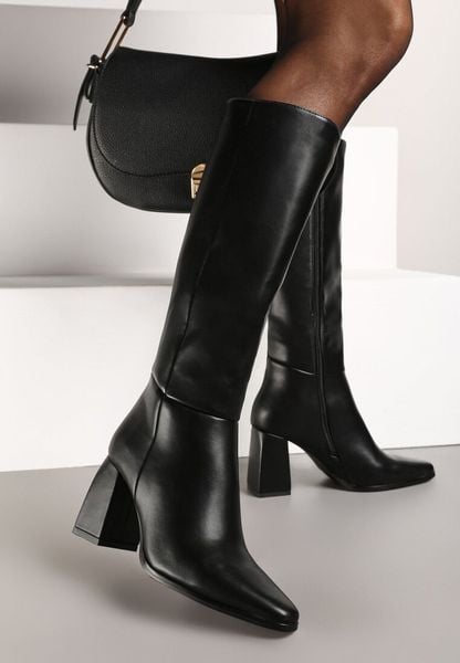 Czarne Casualowe Kozaki na Słupku z Ociepleniem i Dopasowaną Cholewką Niarithraea