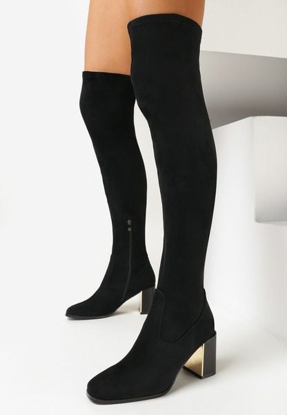 Czarne Kozaki za Kolano z Ozdobnym Obcasem z Metaliczną Wstawką Agnerissa