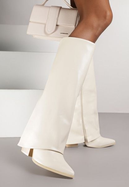Beżowe Kozaki na Stożku z Wywiniętą Cholewką Nalloria