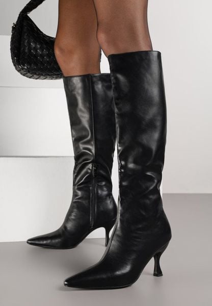 Czarne Marszczone Kozaki Vices z Imitacji Zamszu na Szpilce z Noskiem w Szpic Caldissa