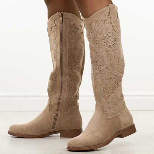 Beżowe zamszowe kozaki damskie Potocki 11342