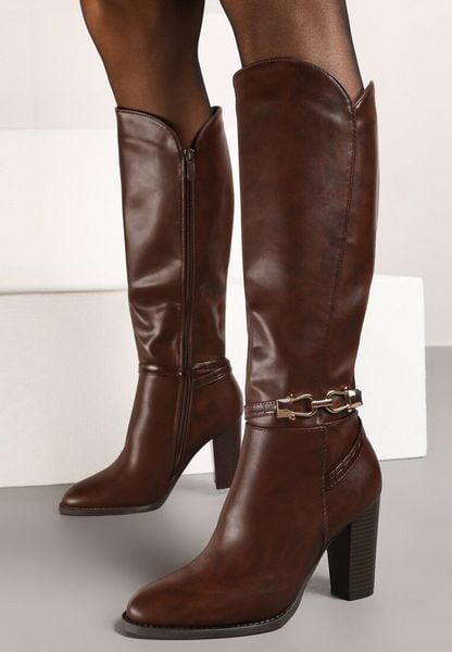 Brązowe Kozaki na Słupku z Minimalistyczną Klamerką Vortifra