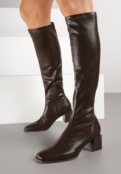 Brązowe Kozaki na Obcasie z Dopasowaną Cholewką Fagwona